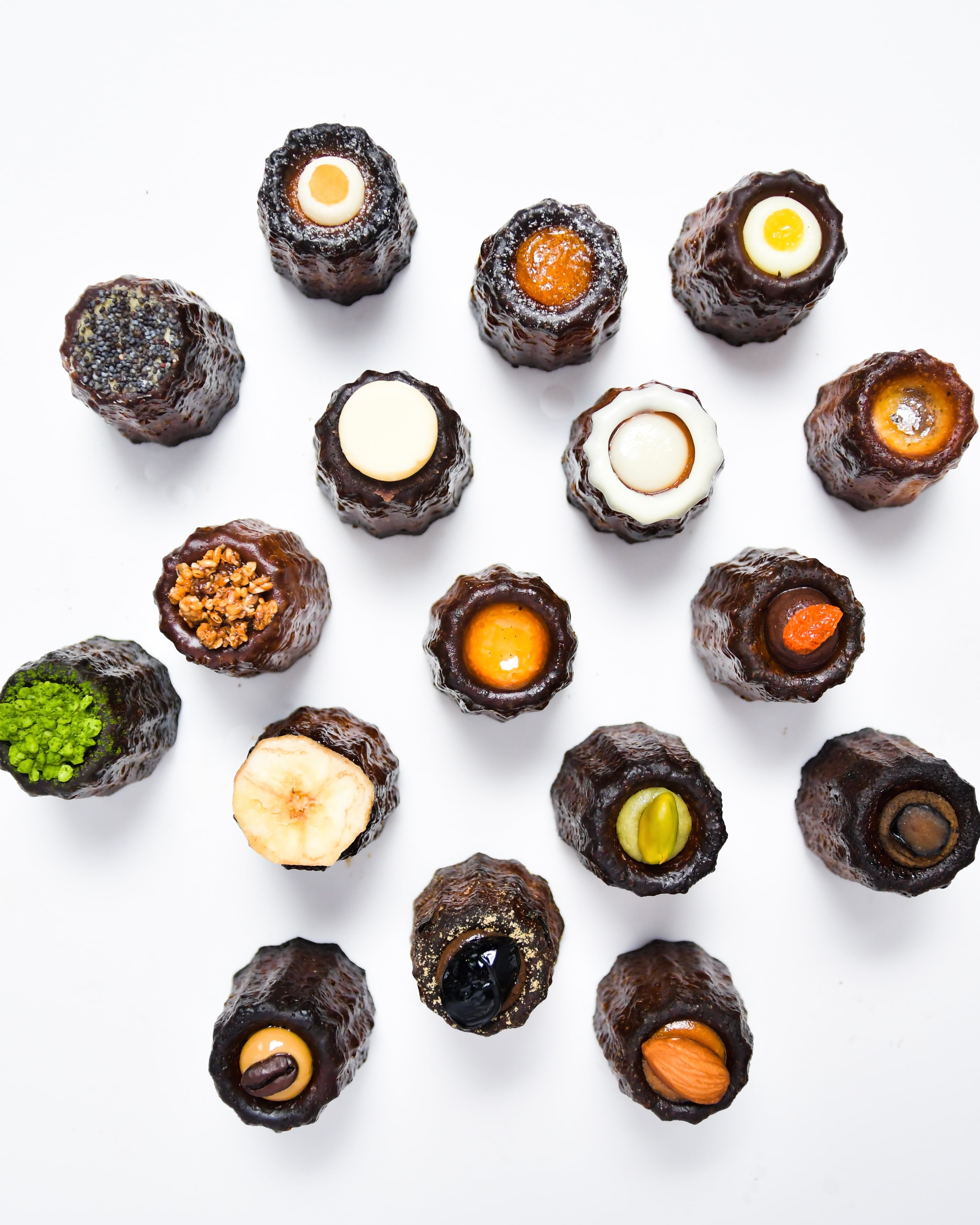すべてが"チョコ仕立て"の9種のカヌレ。 「ちょこづくし。」のボックスが新登場。 2/10〜3/14は バレンタイン&ホワイトデー限定ボックスで登場! 価格 ¥3640(税込) + 送料(クール) 商品内容 ・大人のカカオ ・カカオニブ ・カカオの果実 ・塩と生チョコ ・エスプレッソ ・ピスタチオミルク ・バニラ ・温州みかん ・インペリアルミルクティ 各1個 原材料 【大人のカカオ】 牛乳、砂糖、卵、小麦粉、カカオマス、バター、洋酒、トレハロース、塩 【カカオニブ】 牛乳、砂糖、卵、小麦粉、カカオマス、バター、洋酒、チョコレート、生クリーム、カカオニブ、塩 【カカオの果実】 牛乳、砂糖、卵、小麦粉、ホワイトチョコレート、バター、カカオパルプ、生クリーム、洋酒 【塩と生チョコ】 牛乳、砂糖、卵、小麦粉、カカオマス、バター、洋酒、トレハロース、生クリーム、塩 【エスプレッソ】 牛乳、砂糖、卵、小麦粉、バター、チョコレート、コーヒー、生クリーム 【ピスタチオミルク】 牛乳、砂糖、卵、小麦粉、バター、チョコレート、ピスタチオ、生クリーム、洋酒 【バニラ】 牛乳、砂糖、卵、小麦粉、ホワイトチョコレート、バター、洋酒、生クリーム、バニラペースト 【温州みかん】 牛乳、砂糖、卵、小麦粉、カカオマス、バター、洋酒、トレハロース、チョコレート、みかん、生クリーム、塩 【インペリアルミルクティ】 牛乳、砂糖、卵、小麦粉、チョコレート、バター、洋酒、全粒粉、紅茶、 (一部に、乳、卵、小麦を含む) 保存方法 要冷凍(-20℃以下) 賞味期限 商品発送日より未開封で3週間 (保存料不使用の為、開封または解凍後は3日以内に召し上がりください) 召し上がり方 冷凍庫から出し常温で1時間または冷蔵庫で6時間解凍してから召し上がりください。そのままでもしっとり美味しく召し上がれます。オーブントースターで3〜5分加熱する事で焼き立てのカヌレが復活します。仕上げによって溶けるものや焦げ易いものもあるので注意ください。また冷蔵庫で冷やすと中身が引き締まり、しっとり、もっちりと召し上がれます。 配送方法 ヤマト運輸クール(冷凍)60サイズ便でのお届け 60サイズの段ボールに同梱できるには3箱までとなります。 奥丹波カヌレ9個入り同封可能。 ※18個入りは同梱できません。 配送日 ・ご指定がある場合、ご注文日を含め営業日4日以降のご指定でお願いします。 ⚠︎受け取りが可能な日にちでご指定をお願いします。 ⚠︎在庫や悪天候、配送地域、交通状況などによりご希望に沿えない場合がございます。あらかじめご了承ください。 ・ご指定がない場合は、ご注文日を含め営業日最短2~3日での発送となります。