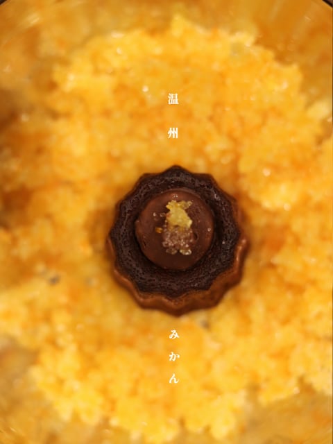 牛乳、砂糖、卵、小麦粉、カカオマス、バター、洋酒、トレハロース、チョコレート、みかん、生クリーム、塩